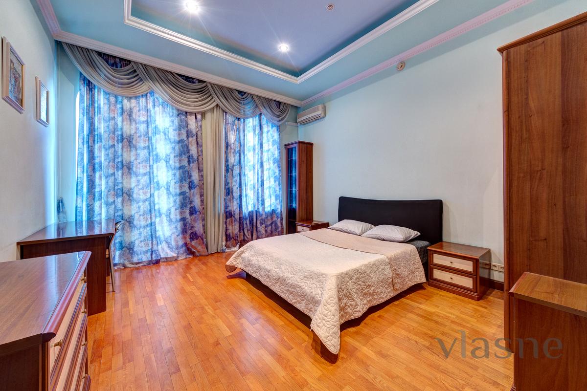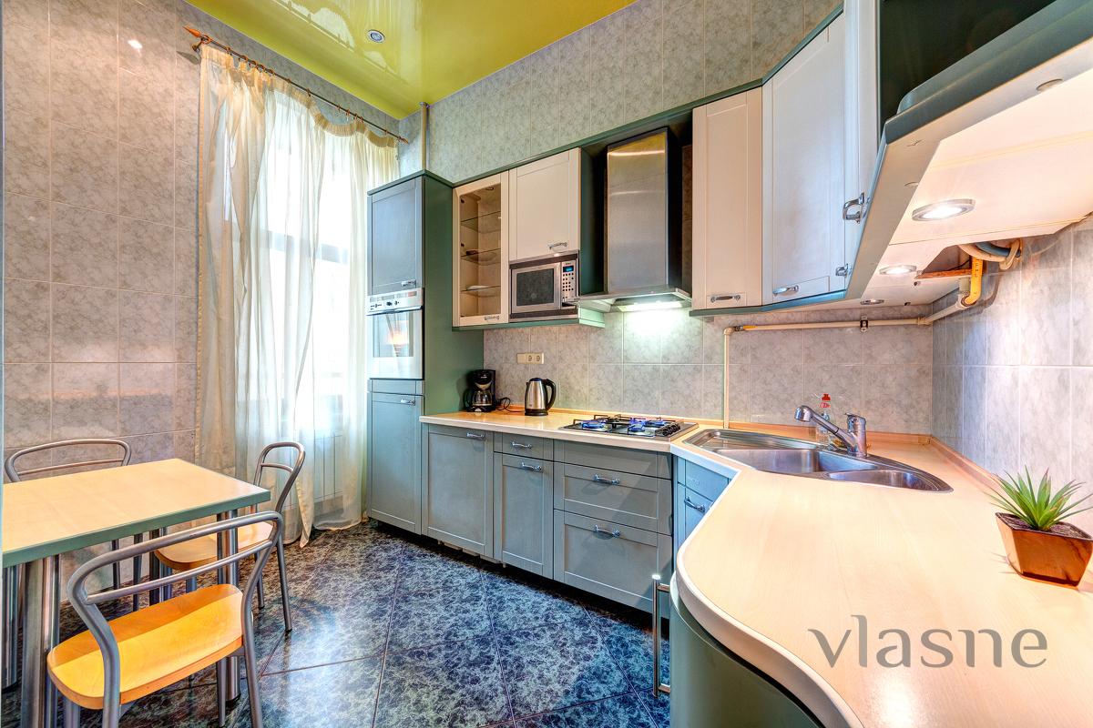 Apartments on Velyka Vasylkivska Street, 46 - a choice for guests for up to 8 people. The additional features of the apartment are as follows: - location in the center of the place on one of the main transport “arteries” (metro station Square of Ukrainian Heroes 270 m) - high steles and great space; - power jacuzzi; - designed interior solutions and color accents.
