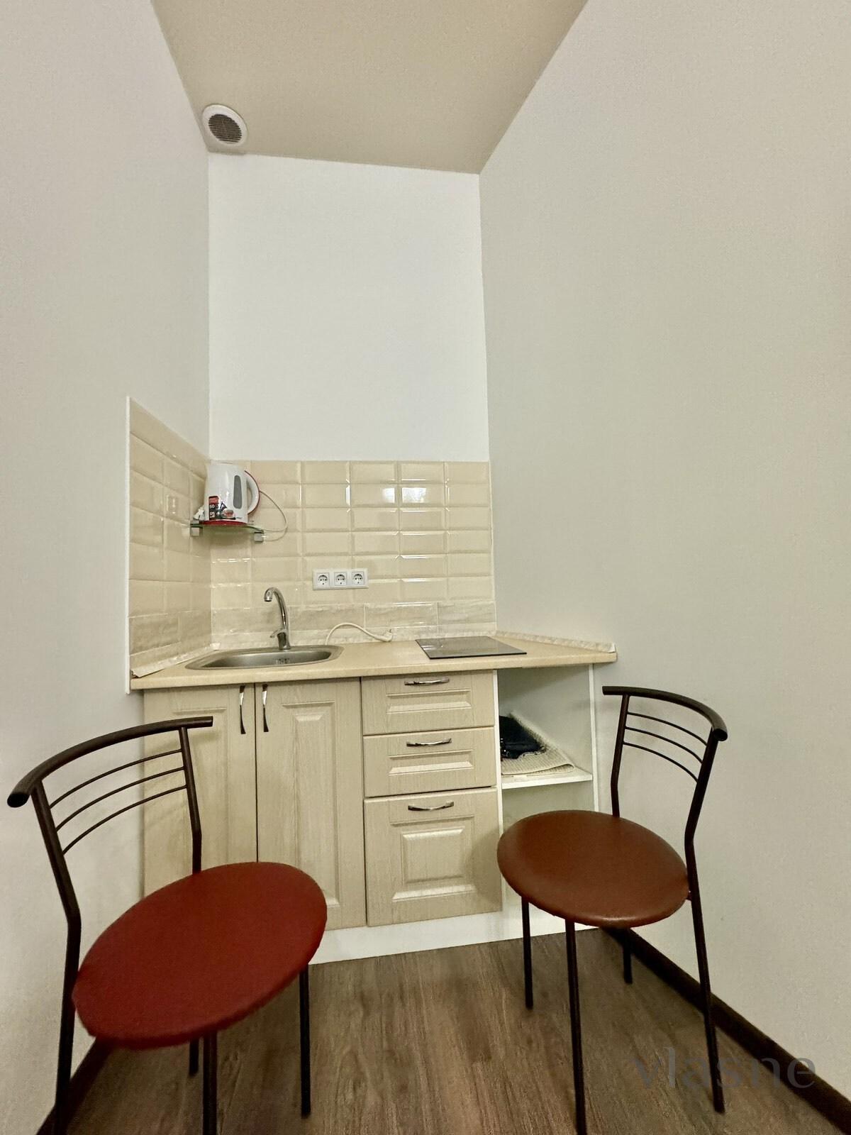 A mini-fridge, a microwave oven and a kettle. There is a small living area with sidewalks. The bedroom area has all the necessary furniture and equipment for a comfortable stay: a double bed with an orthopedic mattress, an armchair sofa, a coffee table with armchairs and a stand with a TV. The washroom is connected to a shower cabin, and there is also a sink with a mirror, a boiler and a washing machine. Obviously, fresh linen, clean towels and hygiene standards. Availability of renting an apartment on the weekend - check the phone number. Equipment • furniture • handy: TV • dryer for drying clothes • shower cabin • electric kettle • microfiber blanket • bed linen • towels • dishes • wardrobe • sofa • hairdryer • shower set Accessories: intercom Roztashuvannya i edge: courtyard type: internal